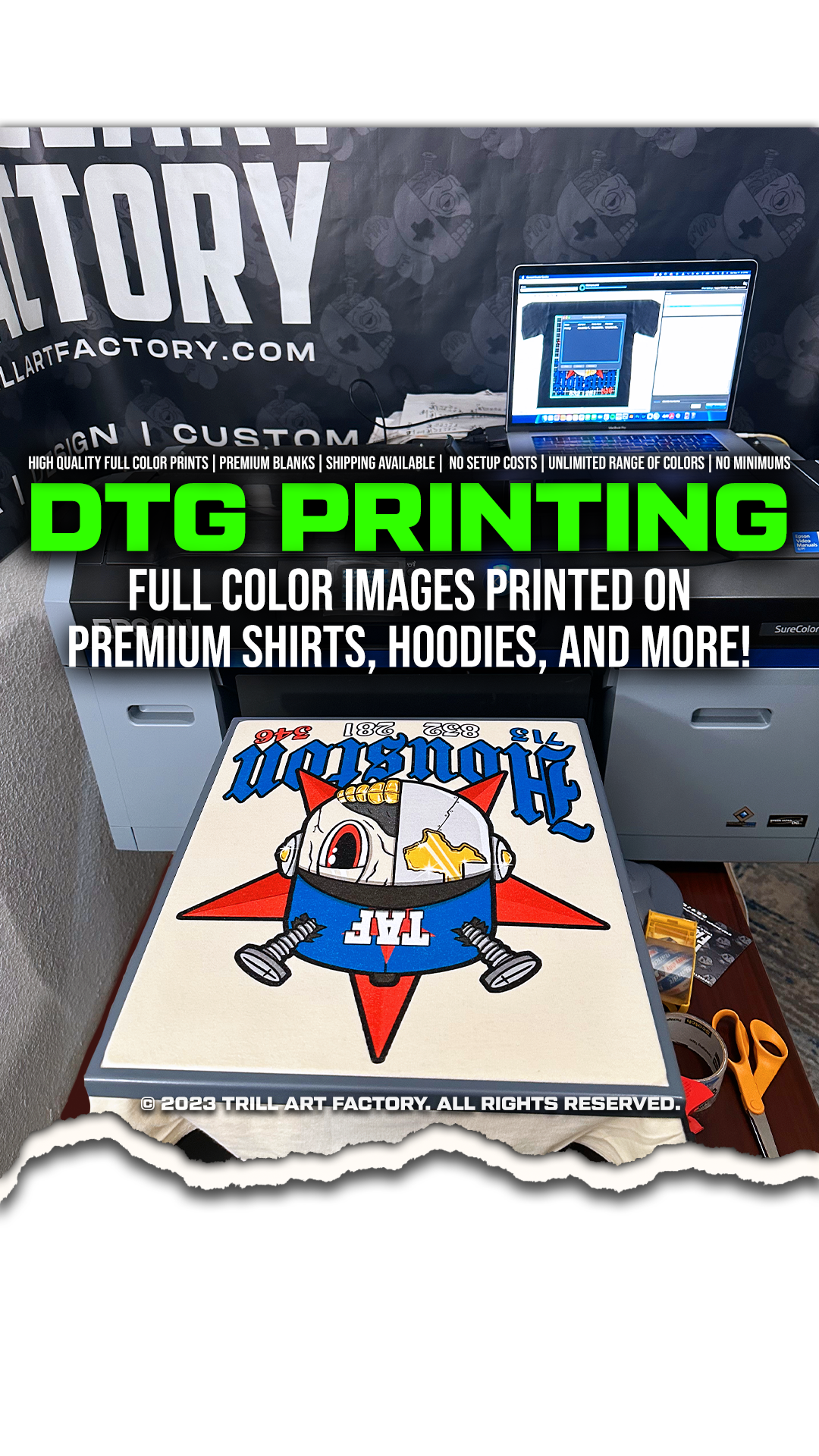 We use one of the highest quality DTG print machines available in the market today. We recommend 100% cotton garments for the best print results.